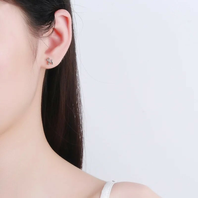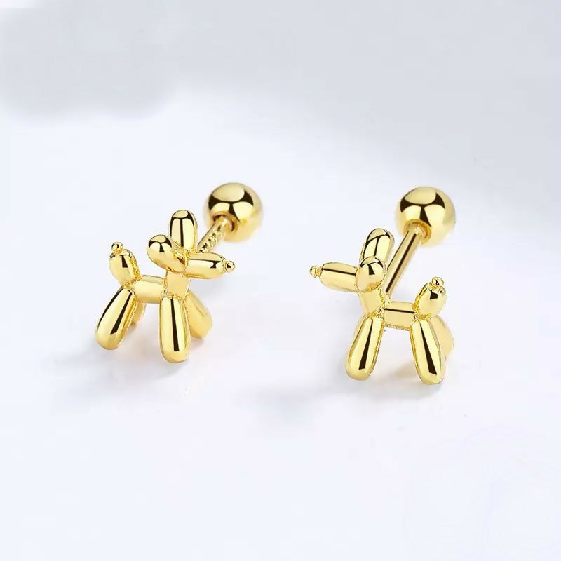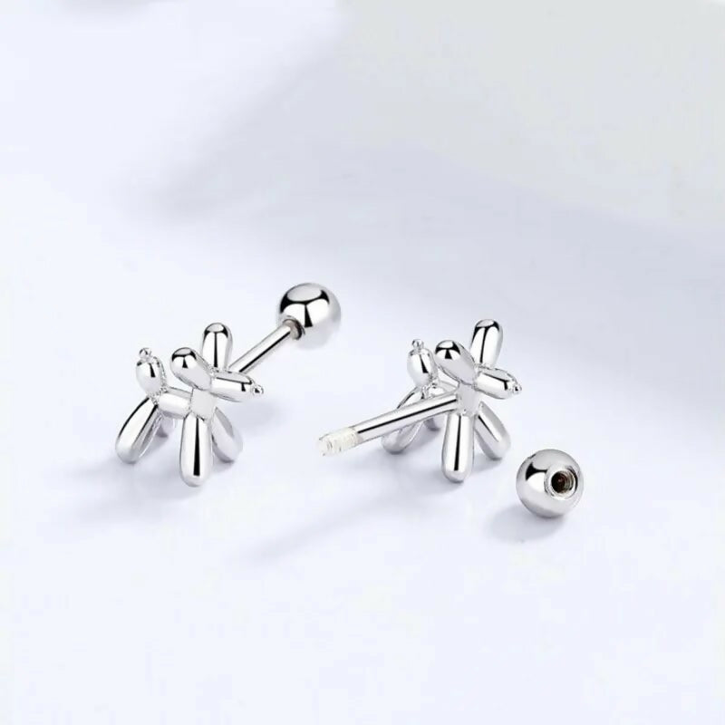 Drawing inspiration from Jeff Koons' iconic balloon dog art, we present these miniature screw-back earrings, blending unique style with exceptional comfort. Crafted from premium sterling silver and employing a multi-layer plating technique, they resist tarnishing, ensuring enduring elegance. Experience fashion-forward design without compromising on comfort or quality.