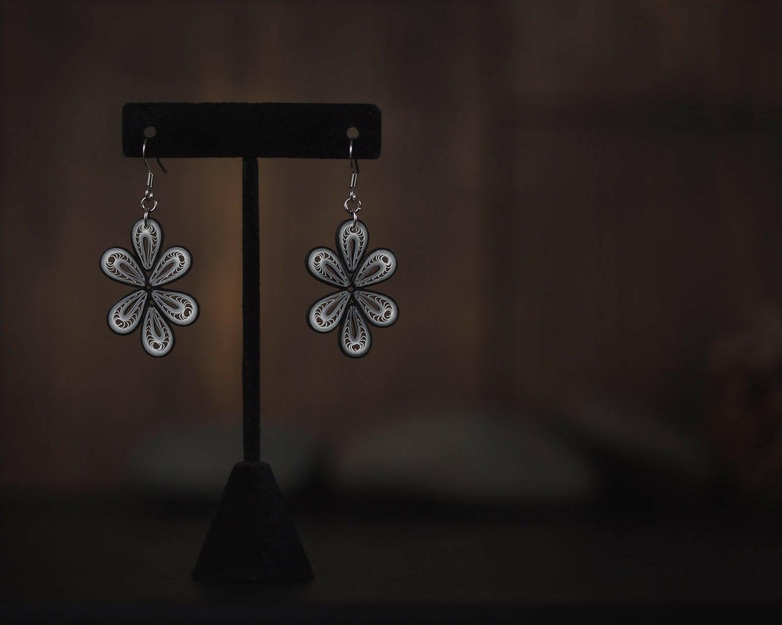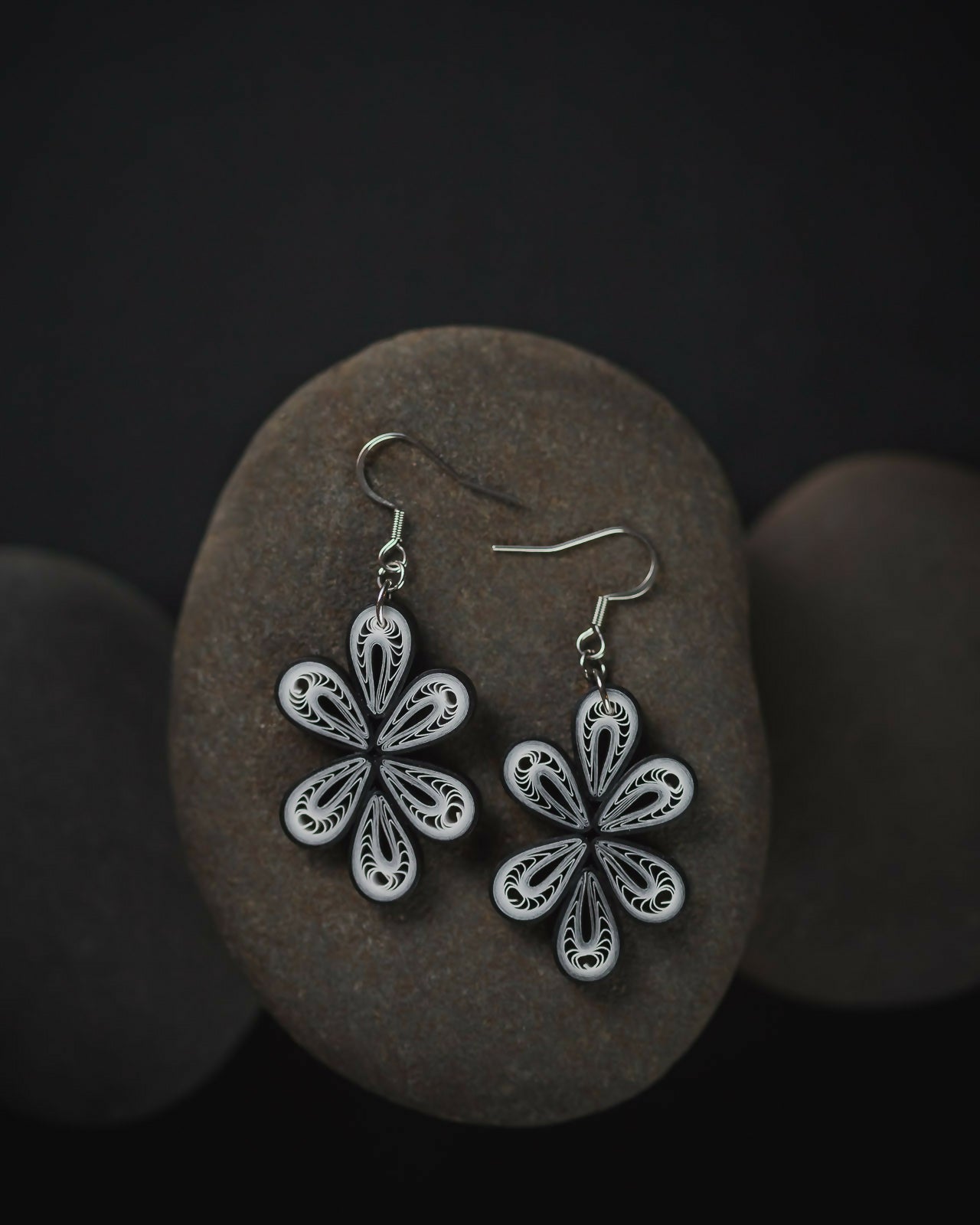 These paper quilling earrings are named "Sudha" in Sanskrit which means "Pristine".