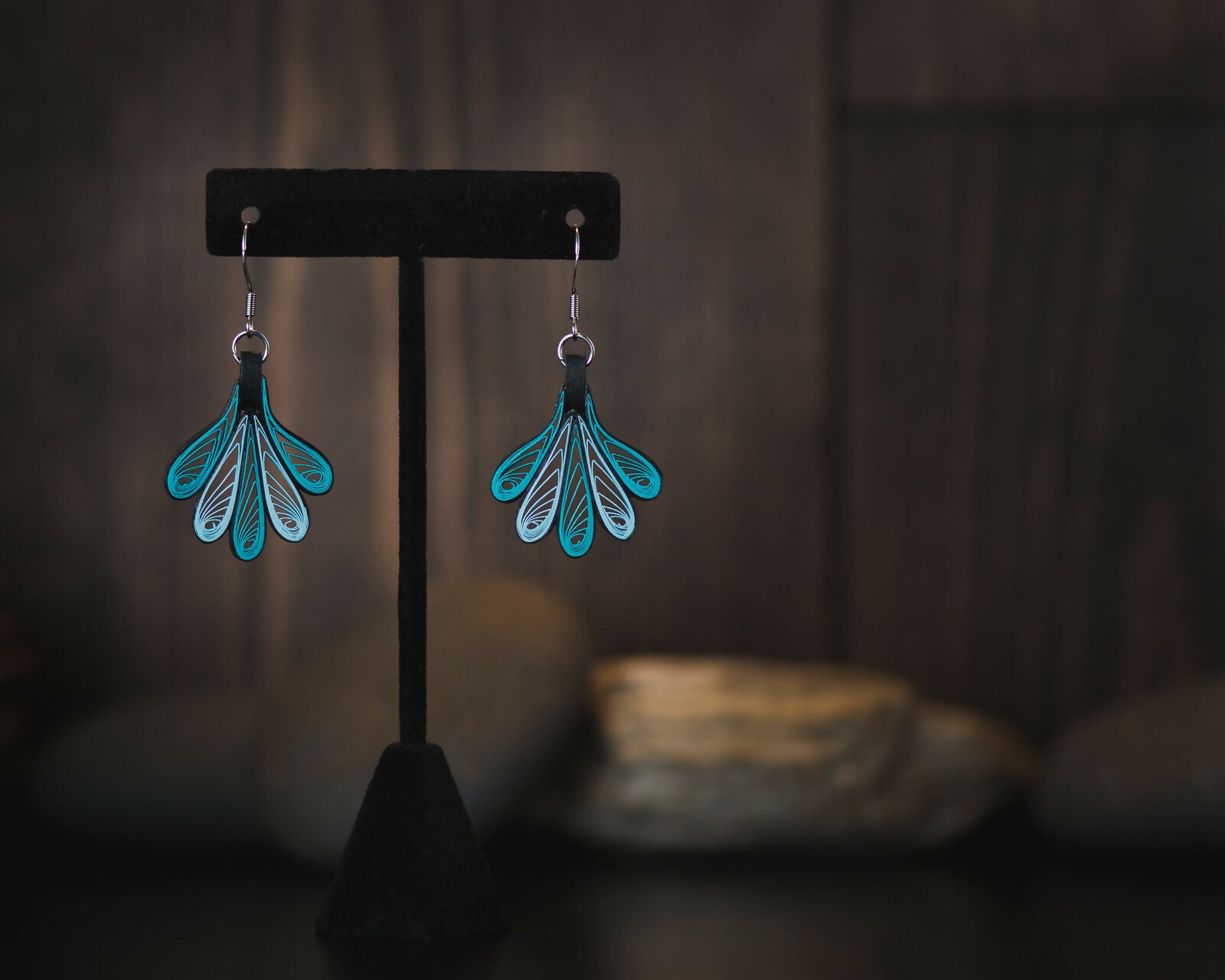 These paper quilling earrings are named "Waja" in Sanskrit which means "Wing".